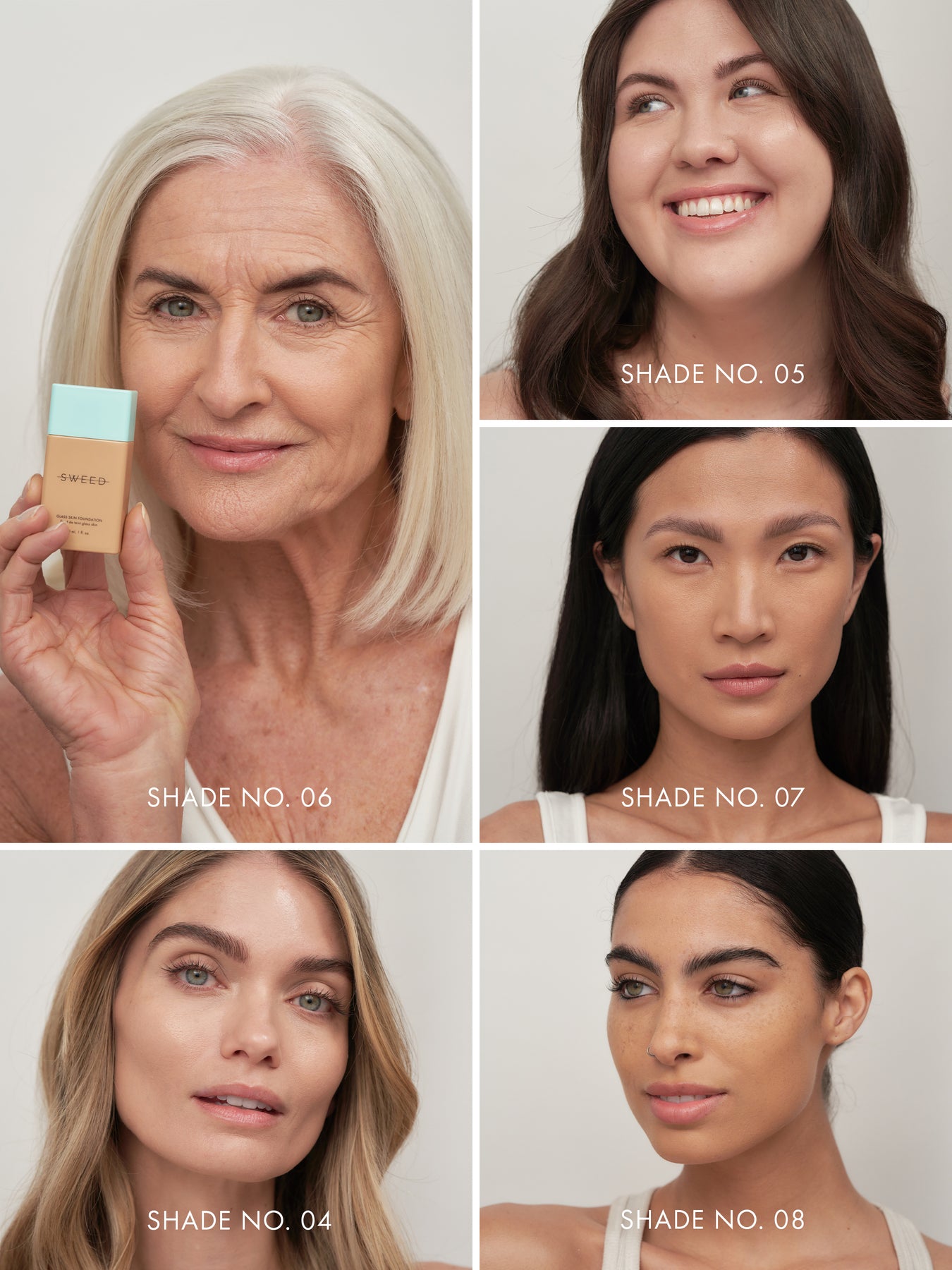 The Glass Skin Foundation works excellently on mature skin types. The photos from our foundation shoot are un-retouched, and the women on the pictures are over 60 years old.