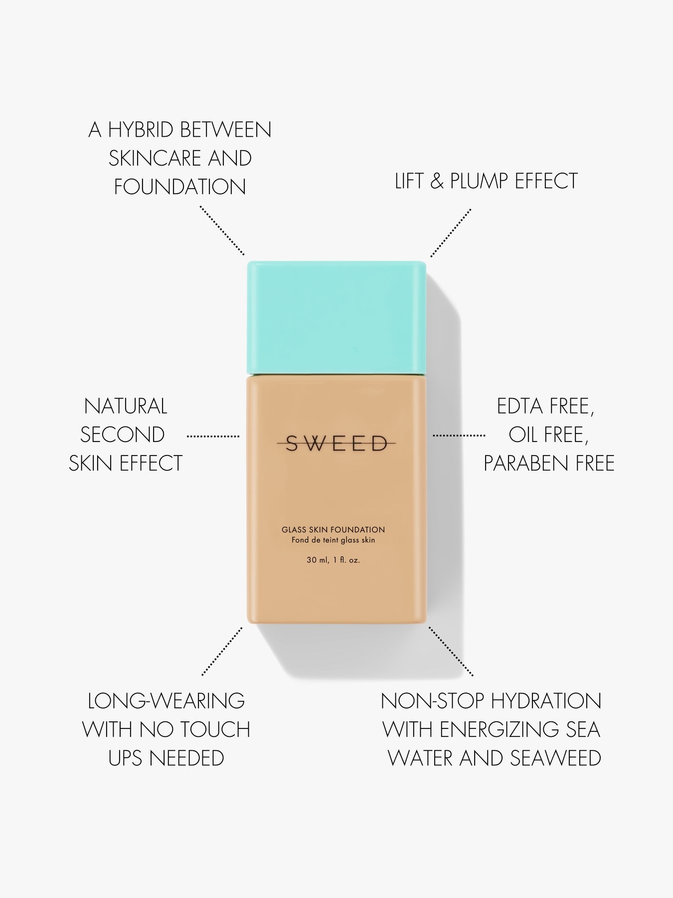 The Glass Skin Foundation does not contain SPF, but complexion products usually provide a light layer of sun protection thanks to their buildable formula, which helps protect the skin from external aggressors.